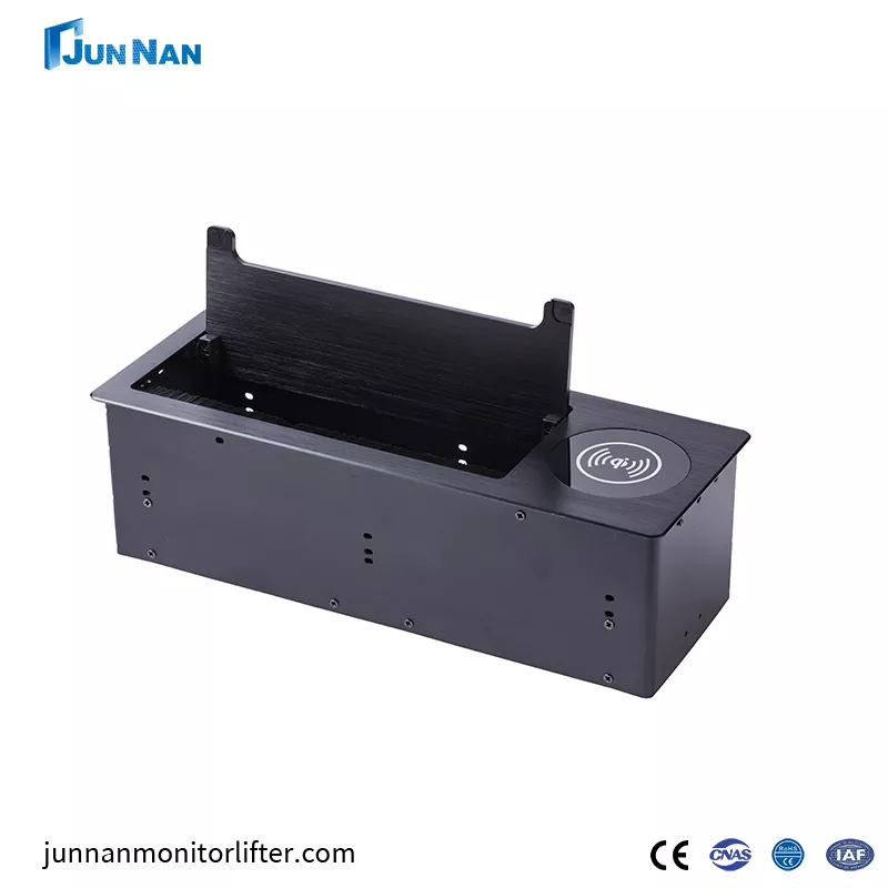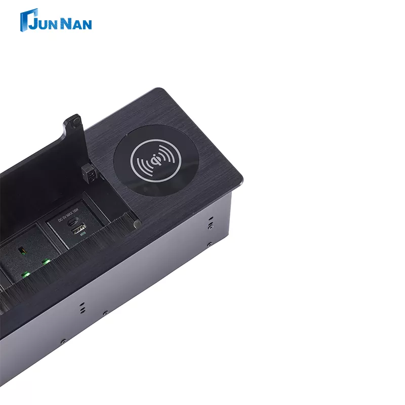 Guangzhou Junan er et stort professionelt udstyr og producent af Hidden Desk Wireless Charge Smart Office Furniture Tabletop Socket i Kina. Hidden Desktop Wireless Charging Smart Office Furniture Desktop Pacch Socket er en enhed, der kombinerer den trådløse opladningsfunktion med skrivebordet Power Socket, som kan integreres eller installeres inde i skrivebordet for at give praktisk trådløs opladningsfunktion uden at besætte skrivebordet, hvilket gør skrivebordet mere pænt og smukt.